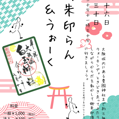 ランニングベースから大阪城内の豊國神社までウォーキング。からだを動かしましょう!