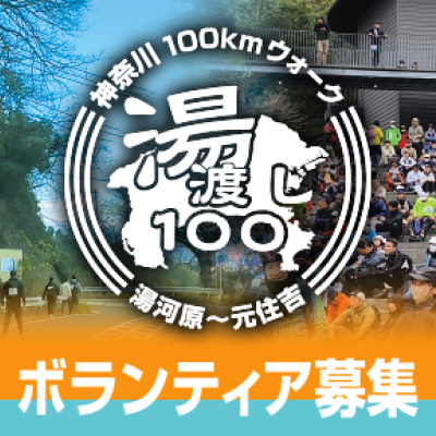 神奈川県最⻄端の町である湯河原から最東端 の川崎(元住吉)までの100キロウォークを通して、「歩く事」の⼤切さ素晴らしさ と、それに関係する町・商店街・お店・⼈など全ての「つながり」を感じる事、未来 につなげていく事を⽬的として開催いたします。